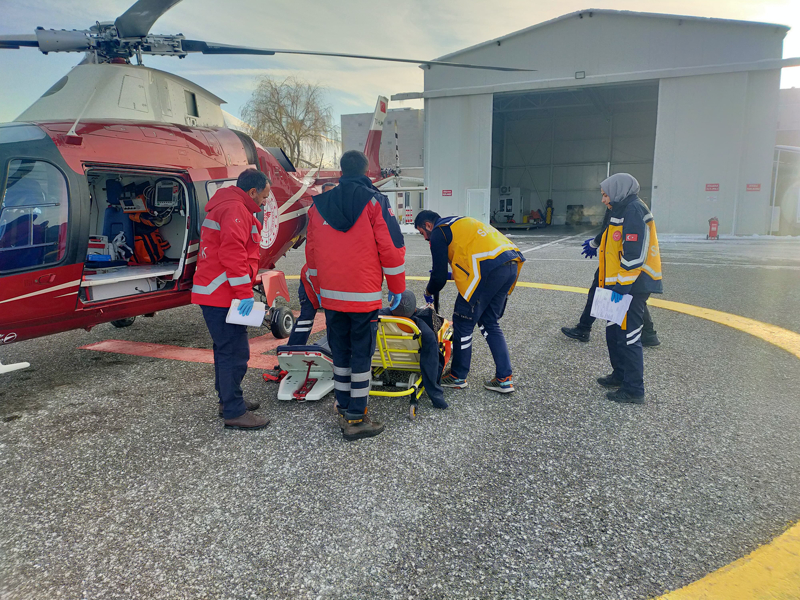 Sağlık ekiplerince helikopterden alınarak ambulansa konulan Koçak, Atatürk Üniversitesi Araştırma Hastanesi'ne sevk edildi.