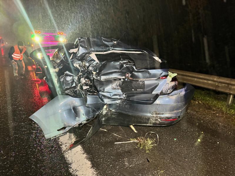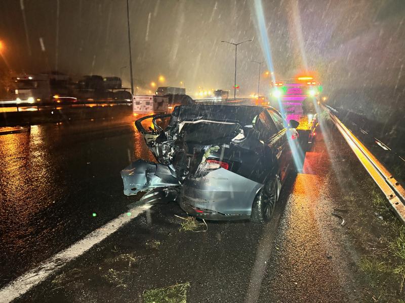 Yolun emniyet şeridinde sürüklenerek bariyerlere çarpan otomobilin sürücüsü Kadir Ç. araçta bulunan Şinasi S. ve Süleyman S. yaralandı.