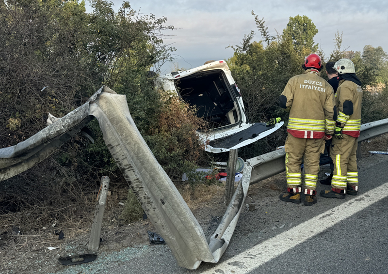 Yaralılar, refüjde ters dönen araçtan çıkarıldıktan sonra ambulanslarla Düzce'deki hastanelere kaldırıldı.