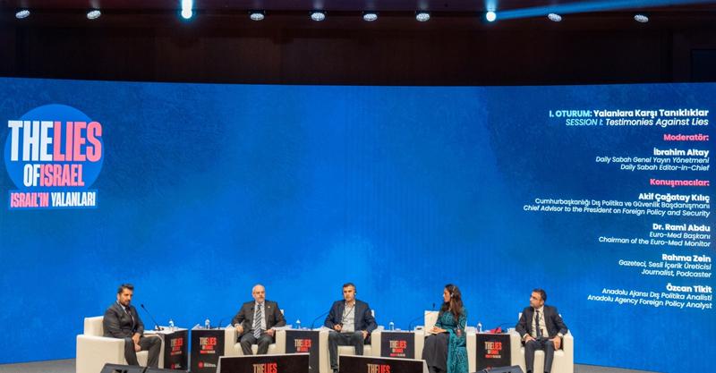 Moderatörlüğünü Daily Sabah Genel Yayın Yönetmeni İbrahim Altay'ın üstlendiği "Yalanlara Karşı Tanıklıklar" başlıklı ilk oturuma, Cumhurbaşkanlığı Dış Politika ve Güvenlik Başdanışmanı Akif Çağatay Kılıç, Euro-Med Başkanı Dr. Rami Abdu, Gazeteci Rahma Zein ve Anadolu Ajansı Dış Politika Analisti Özcan Tikit katıldı.
