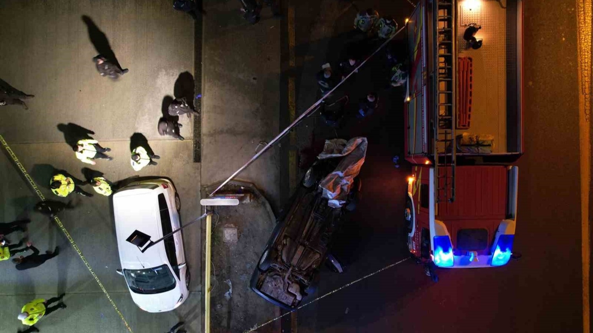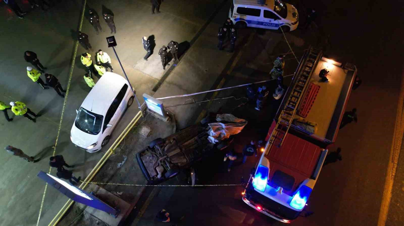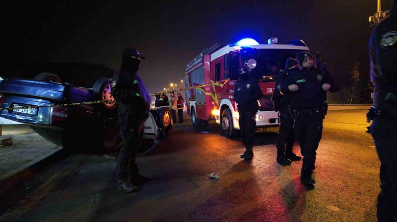 Sürücüsü henüz belirlenemeyen 06 EVT 406 plakalı otomobil de takla atarak yol kenarındaki yakıt istasyonunun önünde durdu.