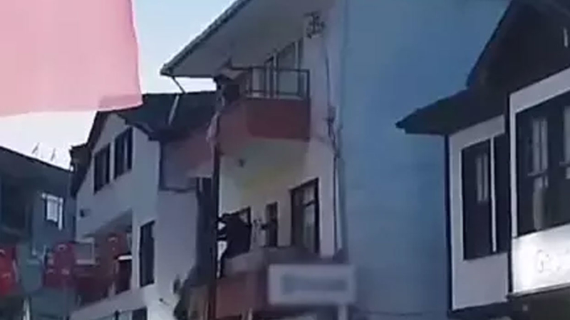 Elleriyle balkonun korkuluklarına tutunup sarkan çocuğun annesi, bir süre sonra durumu fark edip balkona koştu. Anne, dakikalarca asılı olan çocuğunun ellerinden tuttu. Durumu gören vatandaşlar ve esnaf da merdiven dayayıp kızı kurtarmak için seferber oldu. Annesinin ellerinden kayan Zeynep, boşluğa düştü. Bu sırada balkonun altında bekleyen bir vatandaş, kızı havada yakalayıp, sert bir şekilde beton zemine düşmesine engel oldu.