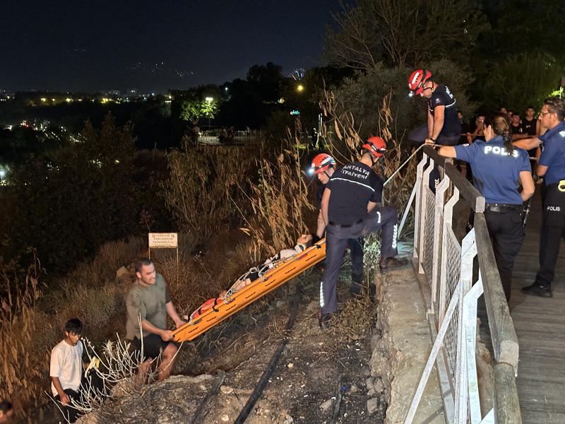 Konyaaltı Sahili'nde arkadaşlarıyla falezlerdeki patika yoldan caddeye çıkmak isteyen E.A.Y, dengesini kaybederek kayalık alana düştü.