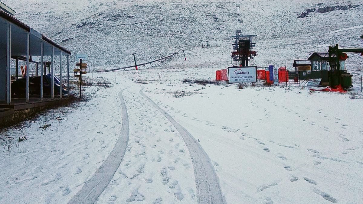 Konyaaltı ilçesi Saklıkent Kayak Merkezi'nde sabah saatlerinde kar yağışı başladı.