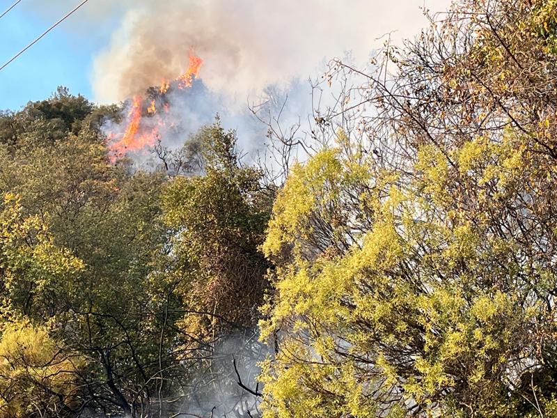 Güzören Mahallesi'ndeki ormanlık alanda henüz bilinmeyen nedenle yangın başladı.