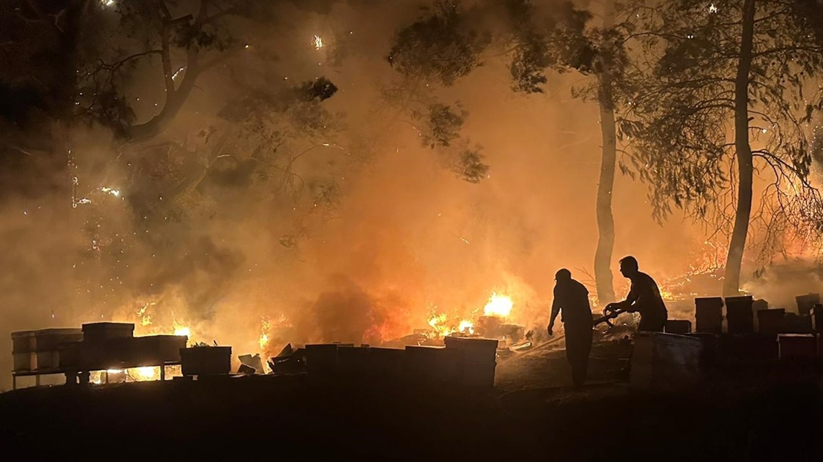 Kısa sürede yayılan yangın yakındaki arı kovanlarına sıçradı.