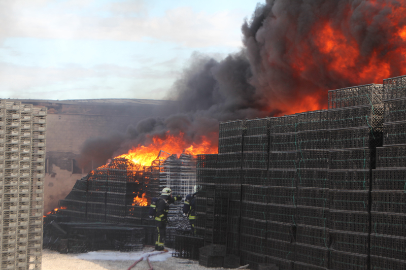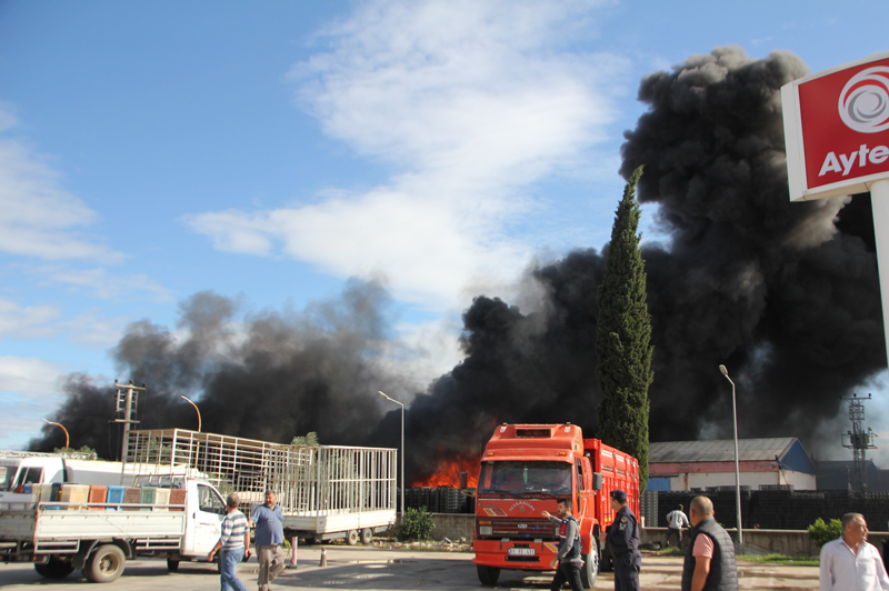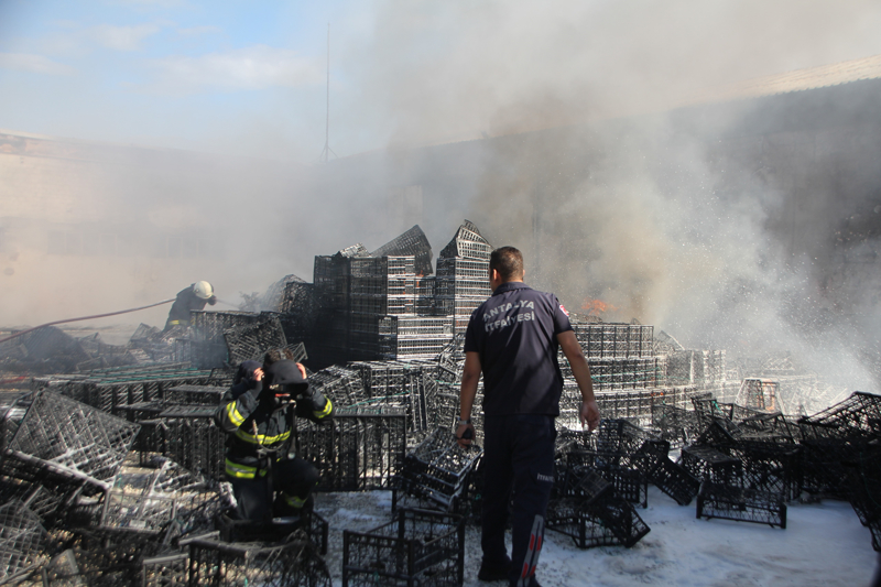 Çandır Mahallesi'nde plastik kasa ve ambalaj üretiminin yapıldığı fabrikanın bahçesinde kasaların bulunduğu alanda, bilinmeyen bir nedenle yangın çıktı.