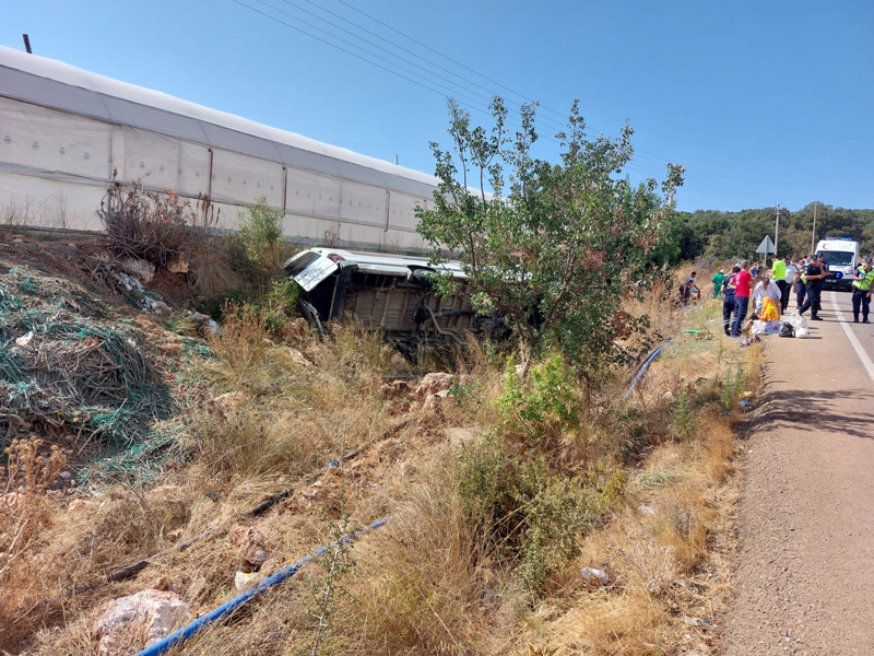 Hüseyin B. idaresindeki 07 BSB 052 plakalı tur minibüsü, D-400 kara yolu Gürses Mahallesi'nde, kontrolden çıkarak şarampole devrildi.