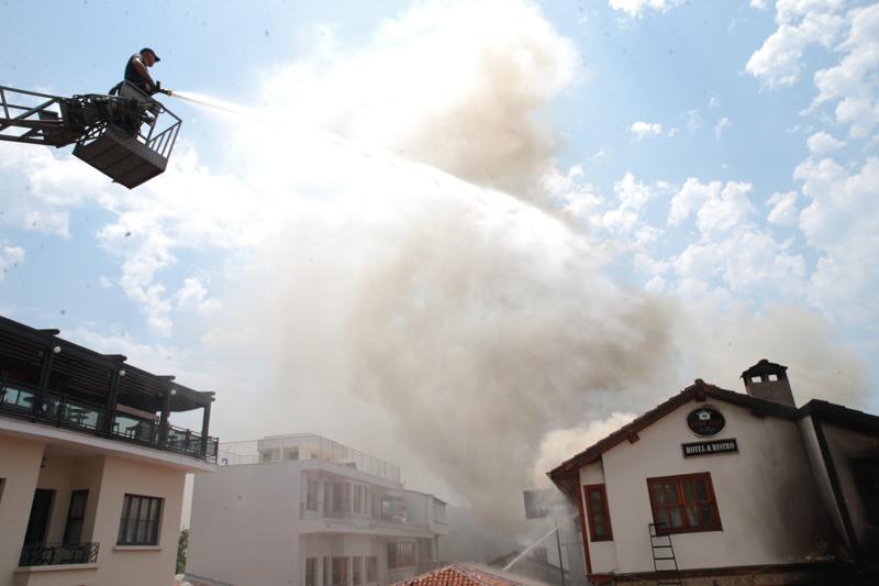 Hızla büyüyen alevler, otelin yanında bulunan iki işletmeye sıçradı.