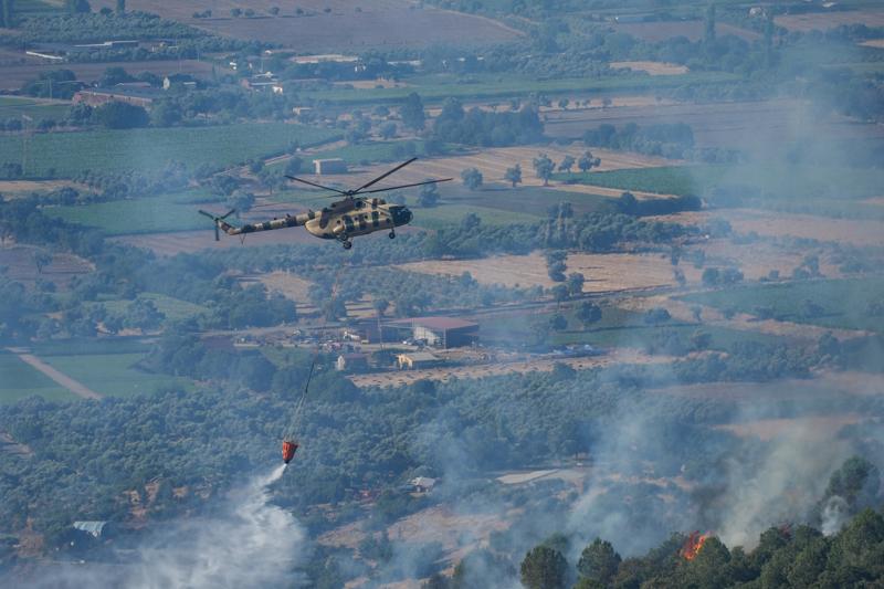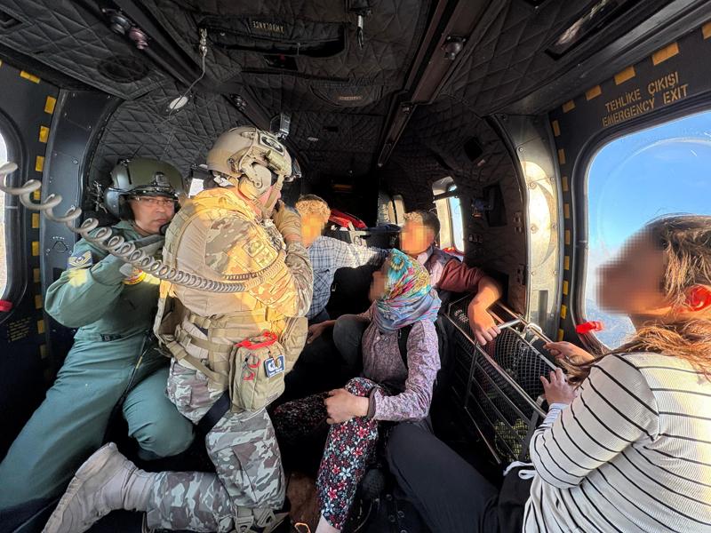 14.25 Hava Kuvvetleri Komutanlığı personeli, İzmir'in Ödemiş ilçesi Tosunlar köyünde çıkan orman yangınında mahsur kalan 4 kişilik aileyi helikopterle kurtardı.