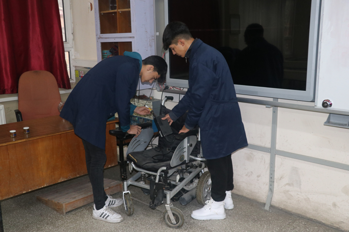 İl Milli Eğitim Müdürlüğü ile Türkiye Sakatlar Derneği Karabük Şubesi arasında imzalanan iş birliği protokolü kapsamında meslek liseleri öğrencileri, öğretmenleri gözetiminde arızalanan akülü tekerlekli sandalyeleri tamir etmeye başladı.