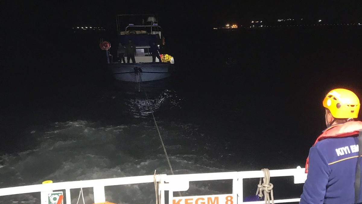 Tekne, "KEGM-8" hızlı tahlisiye botu tarafından yedeklenerek Karaburun Limanı'na emniyetle yanaştırıldı.