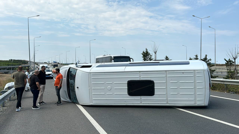 D-020 kara yolunda, Suat Y'nin kullandığı 34 NG 8821 plakalı minibüs, bariyerlere çarparak devrildi.