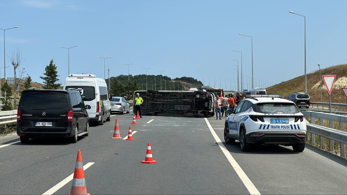 D-020 kara yolunda, Suat Y'nin kullandığı 34 NG 8821 plakalı minibüs, bariyerlere çarparak devrildi.