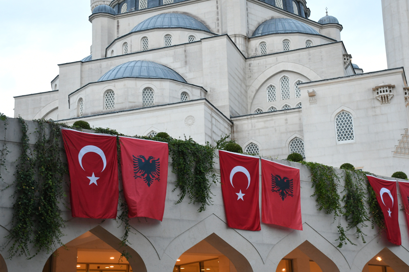 Ayrıca Erdoğan'ın ziyareti kapsamında açılışı gerçekleştirilecek, yapımı Türkiye tarafından üstlenilen Balkanlar'ın en büyük camisi konumundaki Tiran Namazgah Camisi de bayraklarla süslendi.