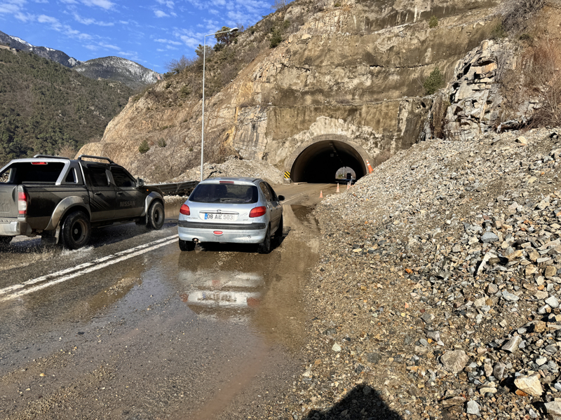 Bölgeye sevk edilen Karayolları ekiplerinin yaklaşık 6 saatlik çalışmasının ardından, yollarda ulaşım kontrollü sağlanmaya başlandı.