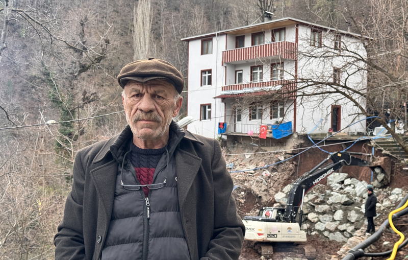 "Evden çıkınca evin hemen yanında heyelan olduğunu gördük. Yukardan gelen sular toprağa baskı yaptı. Sonuçta heyelan oldu. Evimize bir şey olmadı ama tarım arazilerim zarar gördü. Yıkılma tehlikesine karşı evi boşalttık. Binanın alt katında kızım, orta katında oğlum üst katında da ben oturuyorum. Çocuklar ve eşlerimizle 10 kişi yaşıyorduk, Allah korudu. Bina yıkılmadı. İnşallah tahkimatlar bitince evimize geçeceğiz."