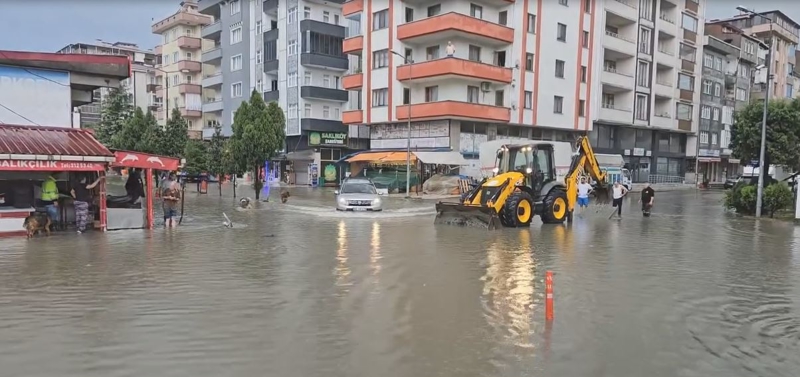 Arhavi ilçesinde bir süre etkili olan sağanak dolayısıyla bazı binaların zemin ve bodrum katlarındaki iş yeri ve depolar su ile doldu.