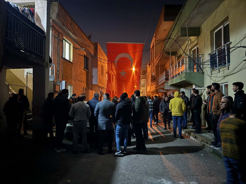 Şehit ailesinin evinin bulunduğu sokağa Türk bayrağı asıldı. Şehit haberini duyan yakınları ve komşuları, taziye için ailenin evine geldi.