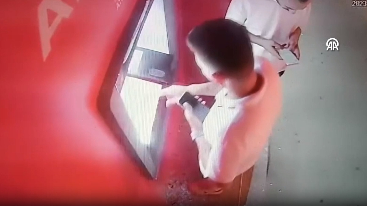 Görüntüde şüphelilerin sahte dolarları hesaba aktardıktan sonra bölgeden ayrılmaları yer aldı.