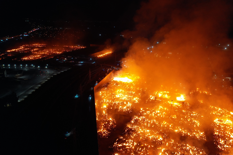 Fabrikanın birinci ve ikinci kısmındaki açık depolama alanında devam eden yangına çevre il ve ilçelerden ilave ekipler de sevk edildi.