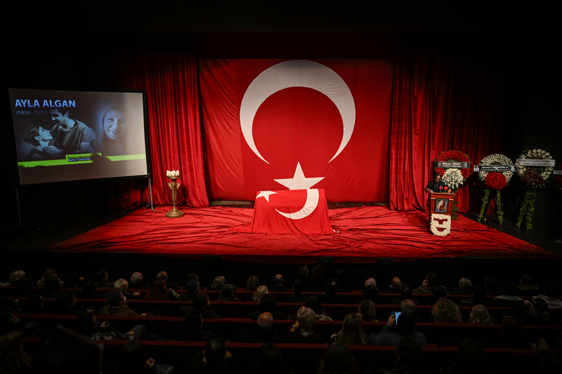 Konuşmaların ardından, oyuncunun Türk bayrağına sarılı tabutunun başına gelen katılımcılar, karanfil bırakarak Algan'a veda etti.