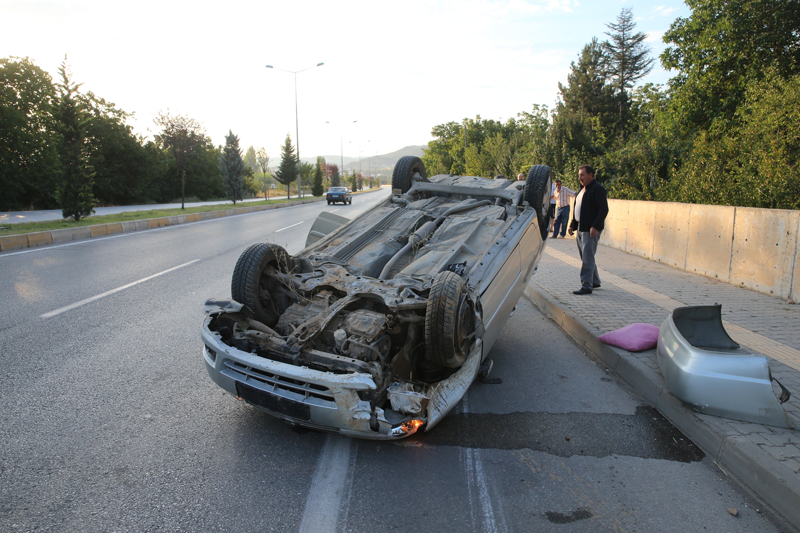 Selami Temur idaresindeki 60 AAZ 681 plakalı otomobil, Tokat-Turhal kara yolu belediye şantiyesi yakınlarında devrildi.