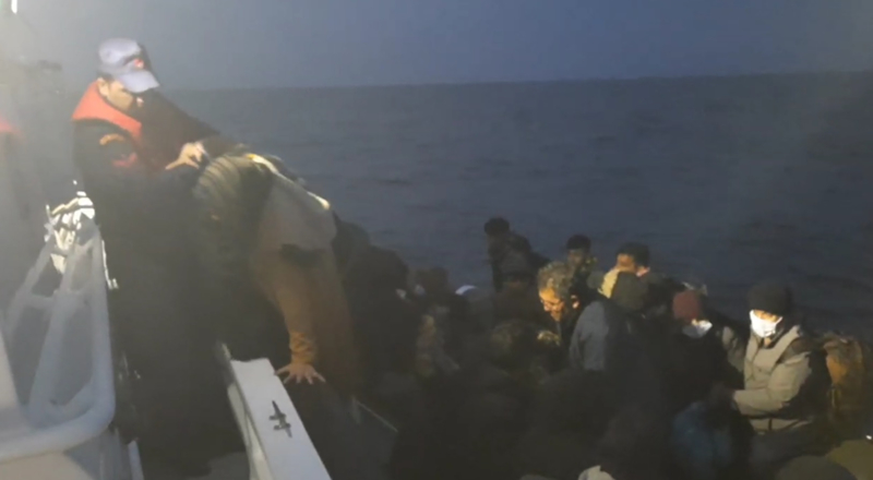 Bunun üzerine Sahil Güvenlik botu "KB-4510" ile bölgeye yönlendirilen ekipler, bottaki 38 düzensiz göçmeni kurtardı.