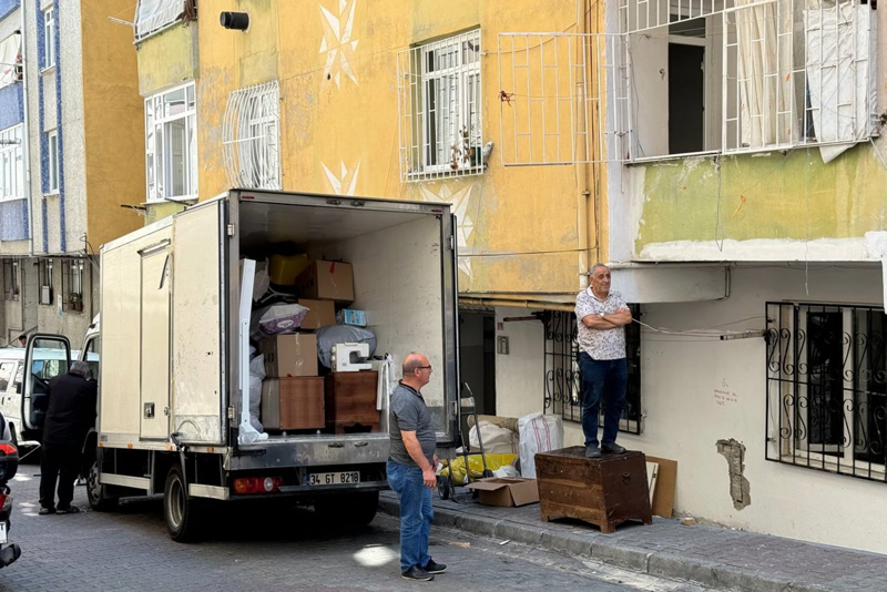 Bina sakinleri, "yarım gün bir daire, yarım gün diğer daire" şeklinde belirlenen sırayla eşyalarını almaya başladı.