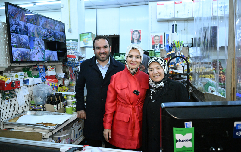Türklere ait işletmelere uğrayan Göktaş, vatandaşların yoğun ilgisiyle karşılaştı. Ailesine ait markete de giden Bakan Göktaş, burada yeniden kasaya geçti.