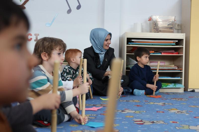 Anaokulu öğrencilerinin etkinliklerine de eşlik eden Göktaş, okul yönetiminden işleyişe dair bilgiler aldı ve velilerle bir süre sohbet etti.