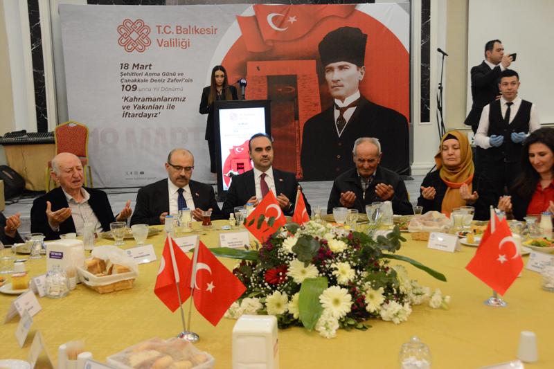 Balıkesir Öğretmenevi'nde şehit aileleri ve gazilerle iftar yapan Kacır, 18 Mart 1915'te bu milletin evlatlarının tarih sahnesinde yerlerini aldığını ve tarihe Türk'ün unutulmaz mühürlerinden birini vurduğunu söyledi.