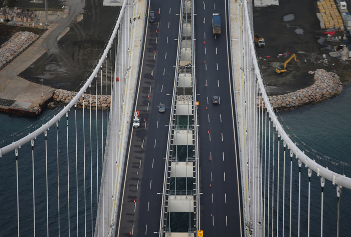 Çanakkale'de köprü olmadan önce ulaşımın çok meşakkatli olduğunu aktaran Bakan Karaismailoğlu, "Burada saatlerce süren yolculuklar vardı. Denizin ve havanın müsaade ettiği kadar feribotların çalışabileceği kadar ulaşım sağlanıyordu. Feribota bindikten sonra yarım saat süren bir yolculuk yapılıyordu. Şu anda bu süreyi köprünün yapılmasıyla birlikte 6 dakikaya düşürdük. Bu gurur projemizi Türkiye'ye vurulmuş en kıymetli mühürlerden birisi olarak görüyoruz. Çanakkale'de olmuş olması, Çanakkale Zaferi'nin 107'nci yıl dönümünde açılmış olması çok önemli." değerlendirmesinde bulundu.