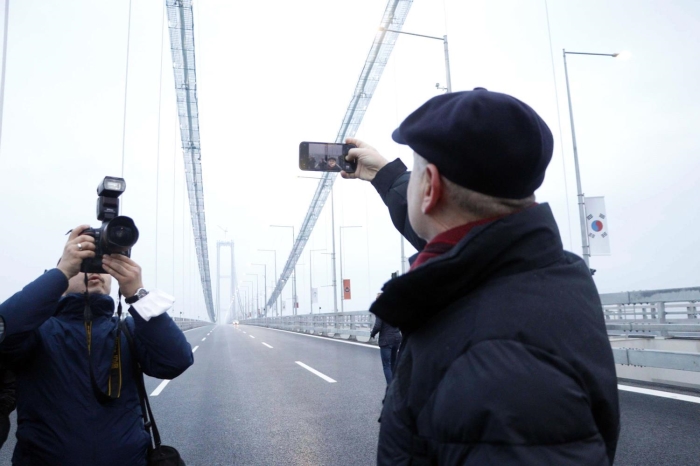 Karaismailoğlu ve beraberindeki heyet daha sonra köprüden yürüyerek Anadolu yakasına ulaştı.
