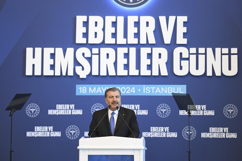 Bakan Koca, Cumhurbaşkanı Recep Tayyip Erdoğan'ın eşi Emine Erdoğan'ın katılımıyla 5 Mayıs Dünya Ebeler Günü ve 12-18 Mayıs Hemşireler Haftası dolayısıyla Başakşehir Çam ve Sakura Şehir Hastanesinde düzenlenen programda konuştu.
