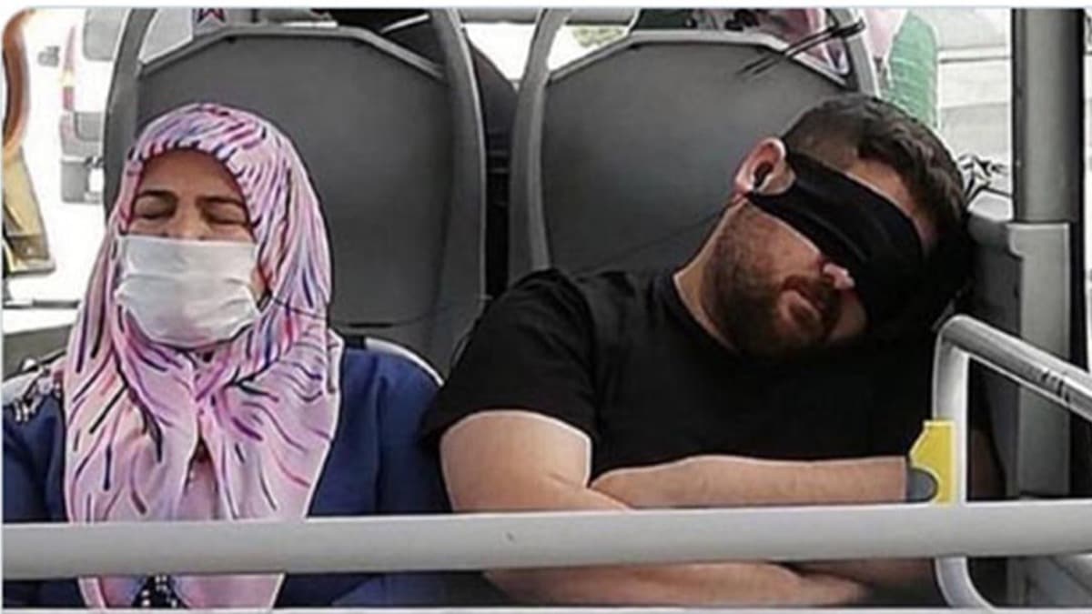 Hamza Tatlı, yaptığı açıklamada fotoğrafta yanında görülen kadının kanser hastası annesi Azize Tatlı (48) olduğunu belirterek, "Günde 19 saat çalışıyorum, annemi hastane götürürken yorgun düştüm. Cam kenarında oturduğum için gözüme güneş gelince maskeyi yüzüme taktım" dedi.
