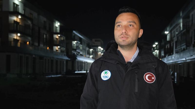 TOKİ uzmanı Tufan Gümüş de "Deprem bölgesinde 7/24 çalışmalarımız devam ediyor. Gündüz nasılsak gece de aynı şekilde konutları yetiştirebilmek için çalışmalarımız sürüyor." bilgisini verdi.