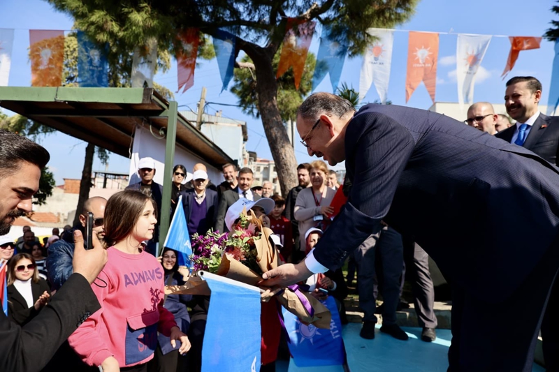 Bakan Özhaseki, İzmir'de 21 tane 6'nın üzerinde deprem üretebilecek fay hattı olduğunu belirterek, "Bir an önce kentsel dönüşüme başlamamız lazım. 25 senedir İzmir'de iktidarda olanlar bir ucundan tutup 'Bismillah' deyip başlasalardı şimdi yarıdan çoğunu halletmişlerdi. Değişim lazım. Sizler de izin verirseniz buraların makus talihini değiştirelim. Gültepe'yi baştan sona kentsel dönüşüme sokalım. Emin olun size çok az gelebilecek bir masrafla bazı yerlerde de hiç masraf etmeden bu işi yapabiliriz." diye konuştu.