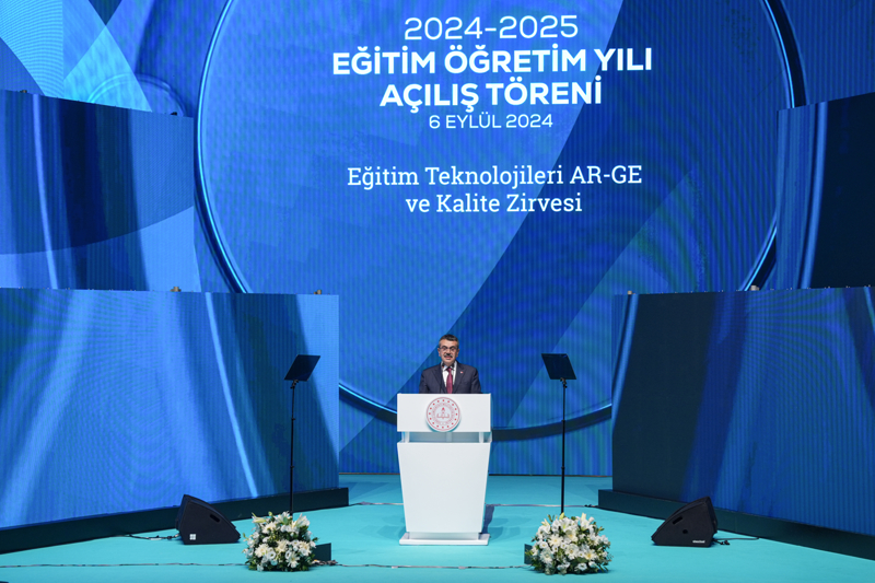 Bakan Tekin, Cumhurbaşkanı Recep Tayyip Erdoğan'ın katılımıyla İstanbul Lütfi Kırdar Kongre ve Sergi Sarayı'nda gerçekleştirilen 2024-2025 Eğitim Öğretim Yılı Açılış Töreni ile Eğitim Teknolojileri AR-GE ve Kalite Zirvesi'ne katıldı.