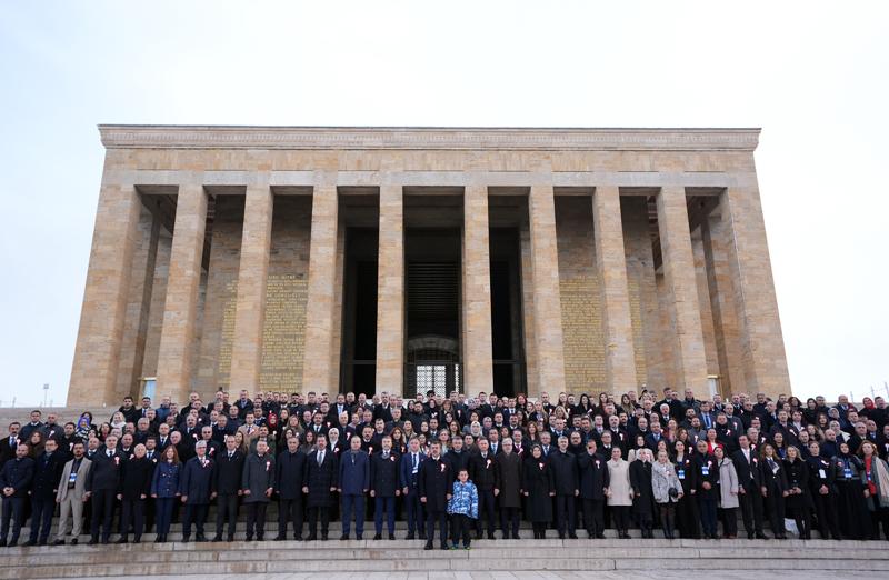 Tekin başkanlığındaki Bakanlık bürokratları ile öğretmenlerden oluşan heyet, Aslanlı Yol'dan yürüyerek Gazi Mustafa Kemal Atatürk'ün mozolesine geldi.