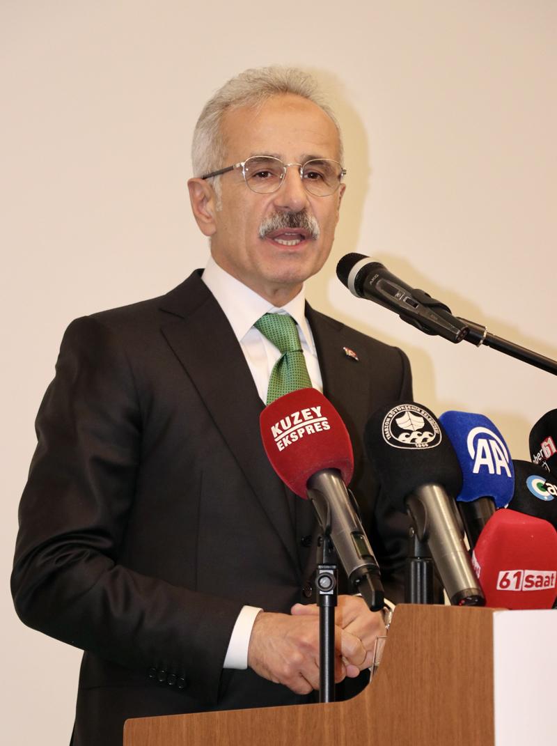 Bakan Uraloğlu, Trabzon ile Samsun arasını 2 saate düşürecek Samsun-Sarp Hızlı Demir Yolu Projesi ile Samsun'dan itibaren Ordu, Giresun, Trabzon, Rize ve Artvin olmak üzere tüm kentleri birbirine bağlayacaklarını sözlerine ekledi.