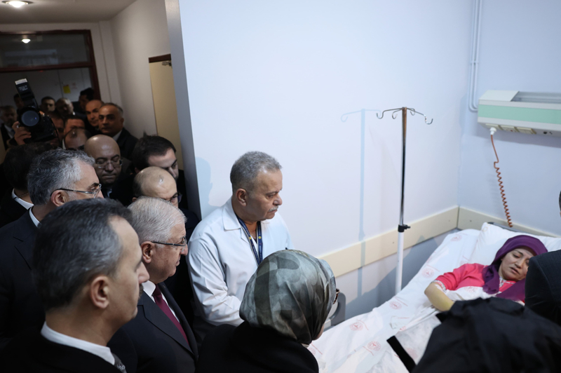 Daha sonra İçişleri Bakanı Ali Yerlikaya, Çalışma ve Sosyal Güvenlik Bakanı Vedat Işıkhan ile AK Parti Genel Başkan Yardımcısı Belgin Uygur, yaralılar Sedef Örs ile Hamide Irgılı'nın tedavi gördüğü Özel Sevgi Hastanesine geçti.