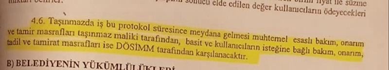 Binanın mülkiyetinin belediyeye ait olduğunu gösteren belgelerle konuşan Karadağlı "Binanın dış bakımı onarımı sadece belediyeye ait biz kiracıyız. Sayın başkan lütfen protokolü dikkatli okuyun" diye konuştu.