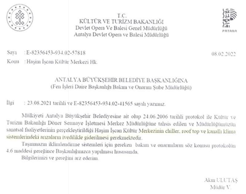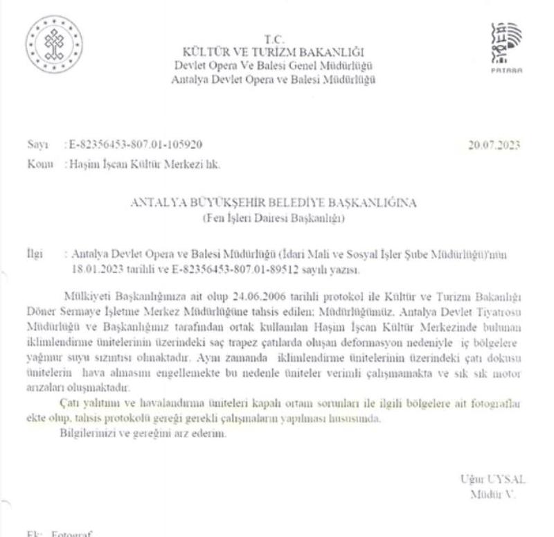 Öte yandan, Kültür ve Turizm Bakanlığı'nın da iki yıl önce binanın bakım ve onarımı için yazı gönderdiğini ancak CHP'li belediyenin bu yazıyı dikkate bile almadığı belirlendi.