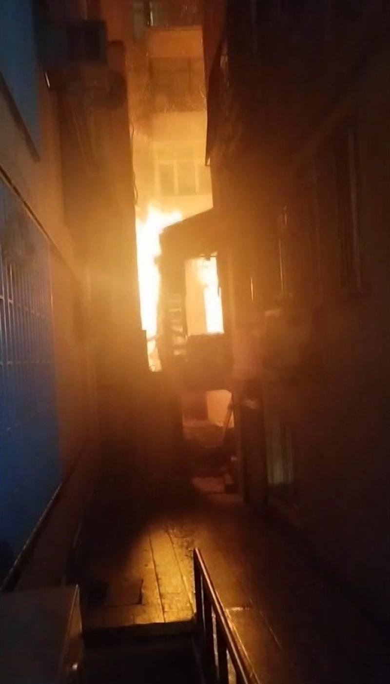 Yangın, ekiplerin 1 saatlik çalışmasıyla söndürülürken polis yanan binanın çevresinde güvenlik önlemi aldı.