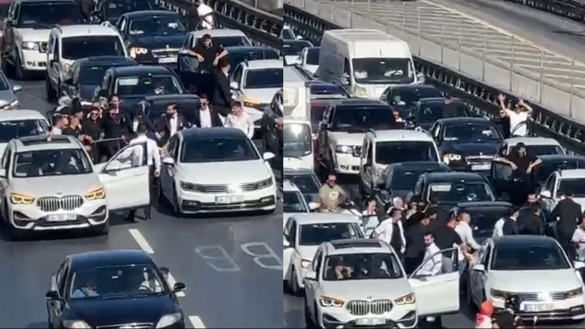 Olay, dün D-100 Karayolu Florya mevkii üzerinde meydana geldi. Düğün konvoyundaki araç sürücüleri, trafiğin yoğunluğuna ve diğer sürücülerin tepki göstermesine aldırış etmeden yolun tamamını trafiğe kapatarak halay çekti.
