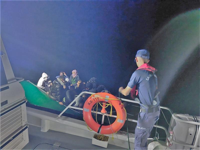 Sahil Güvenlik botu "KB-115" ile bölgeye ulaşan ekipler, 21 düzensiz göçmeni yakaladı.