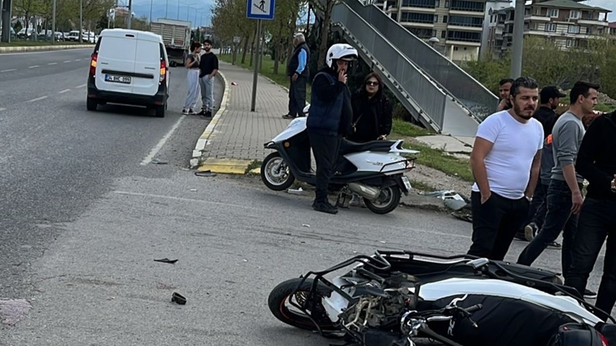 Kazada savrulan motosikletten düşen sürücü Yüce, ağır yaralandı.