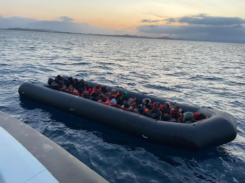Aralarında 20 çocuğun bulunduğu düzensiz göçmenler, Ayvalık ilçesi sınırlarındaki Cunda Adası'na getirildi.