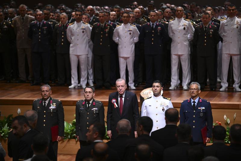 Kurmaylık eğitimlerini tamamlayan 241 subayı tebrik eden Erdoğan, Türk Silahlı Kuvvetlerinin farklı kademelerinde üstlenecekleri vazifelerde her bir subaya üstün başarılar diledi.